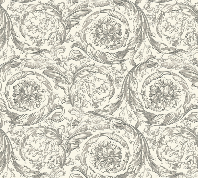 De combinatie van grijs en wit geeft een tijdloze, verfijnde uitstraling en benadrukt de rijke details van het patroon. Perfect voor woonkamers, slaapkamers of representatieve ruimtes waar elegantie en luxe centraal staan.