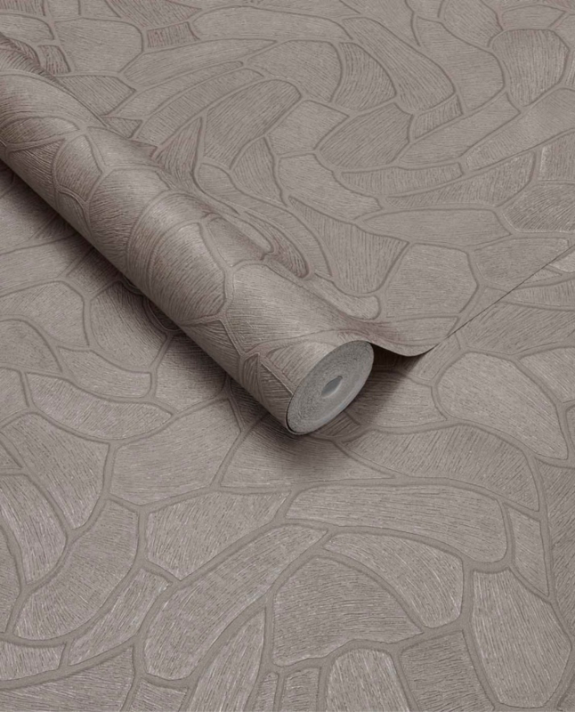 De verfijnde taupekleur straalt rust, balans en luxe uit en vormt een tijdloze basis voor diverse interieurstijlen, van modern en industrieel tot Japandi en klassiek. Het patroon doet denken aan natuurlijke steenstructuren en zorgt voor een rustige, maar karaktervolle wand zonder te overheersen.
