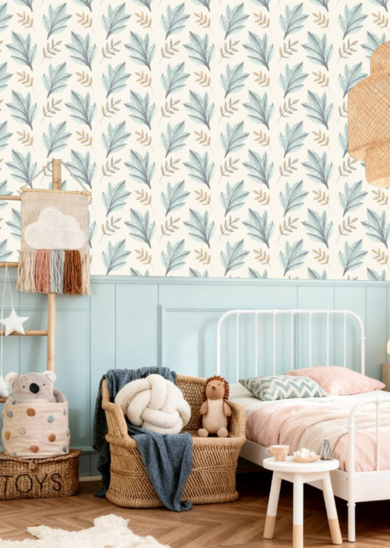 Natuurlijk en rustgevend met een zachte, moderne uitstraling. Leafy 4415 uit de Momi collectie van Noordwand brengt een verfijnd bladerenpatroon in blauw, beige en crème op de muur. Het subtiele dessin zorgt voor een frisse, luchtige sfeer die perfect past in een stijlvolle baby- of kinderkamer.