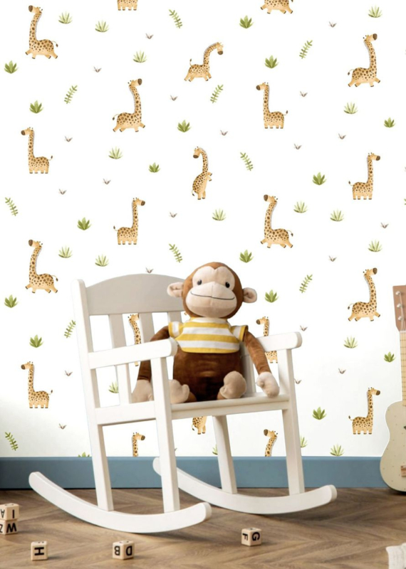 De schattige girafjes geven de wand een vriendelijke en speelse uitstraling zonder druk te worden. De harmonieuze kleurcombinatie zorgt voor een kalme, geborgen basis waarin je kindje kan spelen, dromen en groeien. Dankzij het zachte en natuurlijke kleurenpalet is dit behang eenvoudig te combineren met houten meubels, natuurlijke materialen en accessoires in lichte tinten – een tijdloos ontwerp dat jarenlang mooi blijft.