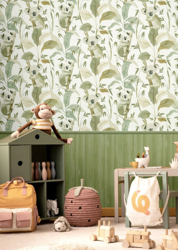 Breng de jungle zachtjes tot leven met Koko 4439 uit de Momi collectie van Noordwand. Schattige koala’s tussen sierlijke bamboe in groen en offwhite zorgen voor een speelse, maar rustgevende sfeer op de muur.