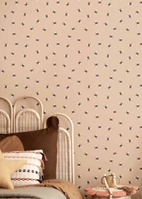 De speelse bijtjes zorgen voor een luchtig en levendig geheel, zonder dat het druk wordt. De zachte oudroze tint geeft het ontwerp een warme en stijlvolle uitstraling, waardoor een gezellige en uitnodigende ruimte ontstaat waarin je kindje kan spelen, ontdekken en dromen. Perfect te combineren met natuurlijke materialen en lichte kleuren voor een harmonieus geheel.