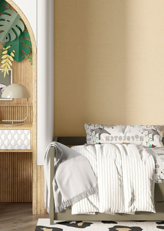 Rustgevend en stijlvol met een zachte, natuurlijke uitstraling. Lino 4496 uit de Momi collectie van Noordwand brengt een subtiele linnenstructuur in warme beige tinten op de muur. Het verfijnde dessin zorgt voor een serene en elegante sfeer die perfect past in een moderne baby- of kinderkamer.