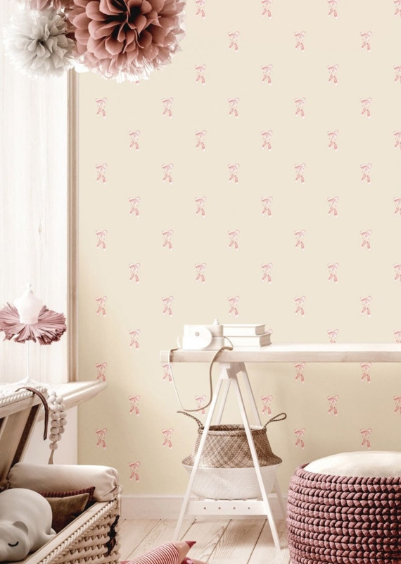 Een elegant en dromerig ontwerp dat direct een zachte en warme sfeer brengt in de kinderkamer. Pointe 4434 uit de Momi collectie van Noordwand combineert sierlijke balletschoenen met subtiele accenten in beige en roze, waardoor een verfijnde en lieflijke uitstraling ontstaat met een vleugje balletmagie.