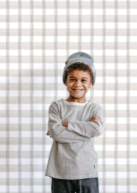 Het subtiele ruitdessin geeft de muur structuur zonder te overheersen en zorgt voor een knusse, gebalanceerde sfeer. De combinatie van grijs en wit maakt dit behang veelzijdig en licht, waardoor het zowel in een kinderkamer als in een moderne woonkamer prachtig tot zijn recht komt.