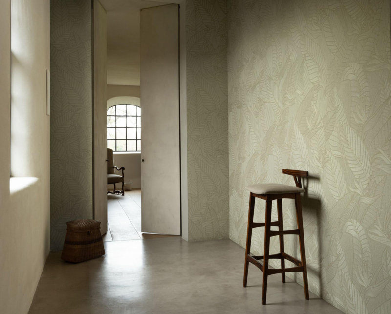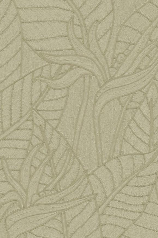 Strelitzia ontleent zijn naam aan de betoverende paradijsvogelbloem. Voor dit dessin werd de bloem vereeuwigd in een nauwgezet handwerk, waarbij haar gracieuze vormen kunstig vastgelegd werden met fijne touwtjes. Deze ambachtelijke creatie is vertaald in naar een schitterend vinyl behangpatroon dat voor een vleugje exotische luxe zorgt.