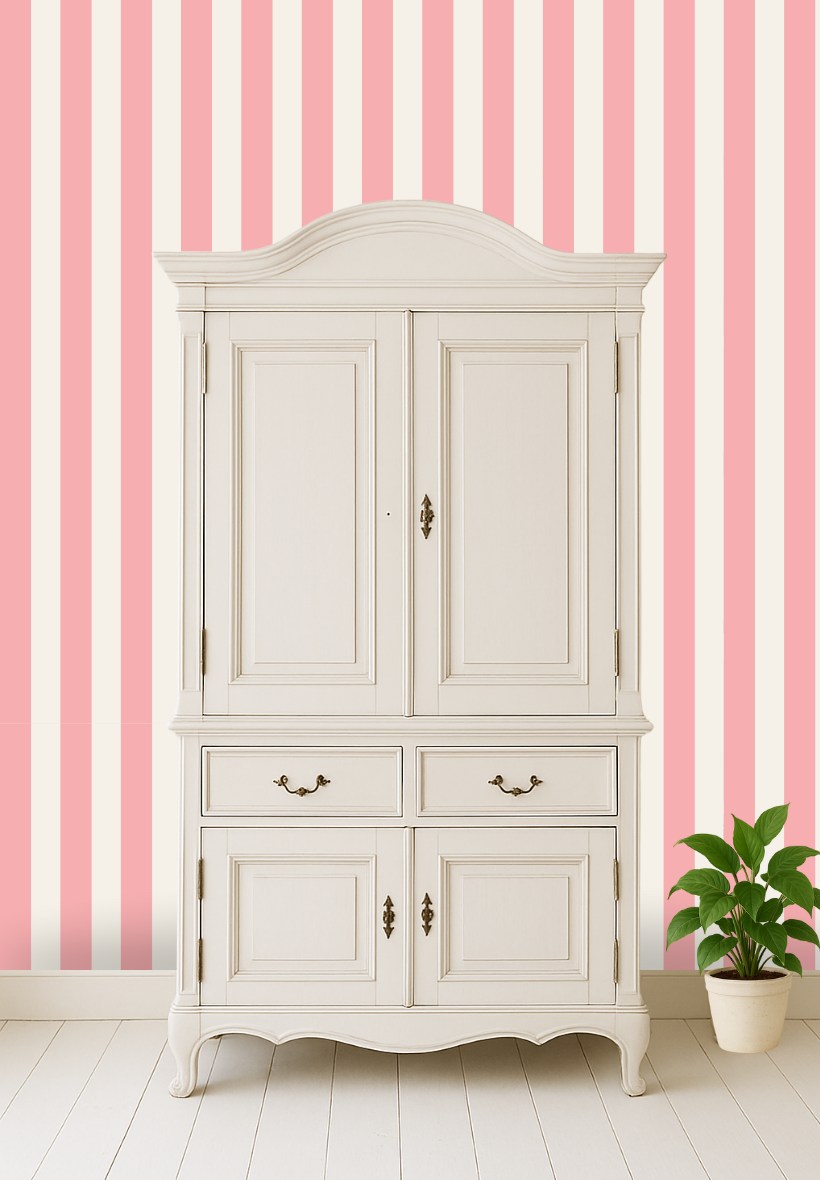 Candy Stripes tovert je muur om met speelse lichtroze en off-white strepen – eenvoudig aan te brengen en direct een vrolijke blikvanger! Exclusief ontworpen door Studio Swaai.