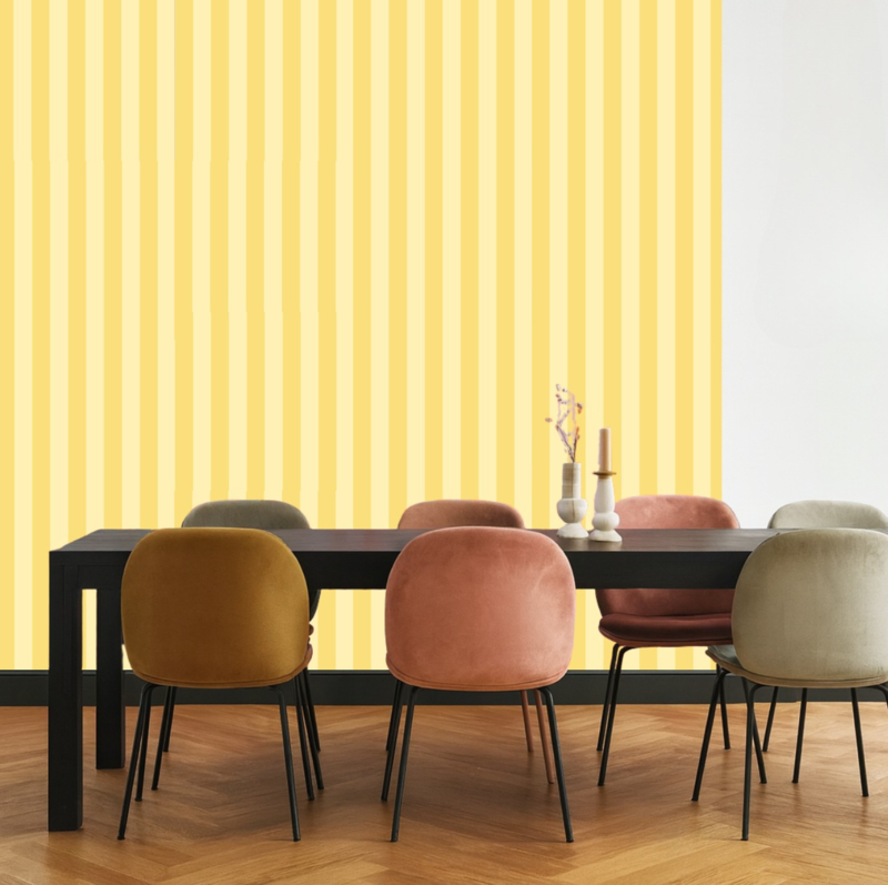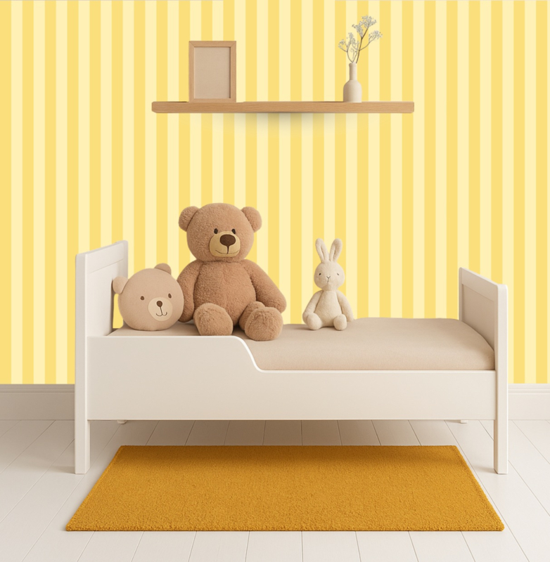 Of je nu een hal wilt opfrissen, een kinderkamer warm wilt aankleden of je keuken een zonnige boost wilt geven: Yellow Glow Lines brengt meteen een goed gevoel. Combineer met lichte houtsoorten, wit of crème voor een serene basis, of kies terracotta en zachtblauw voor een mediterrane twist.