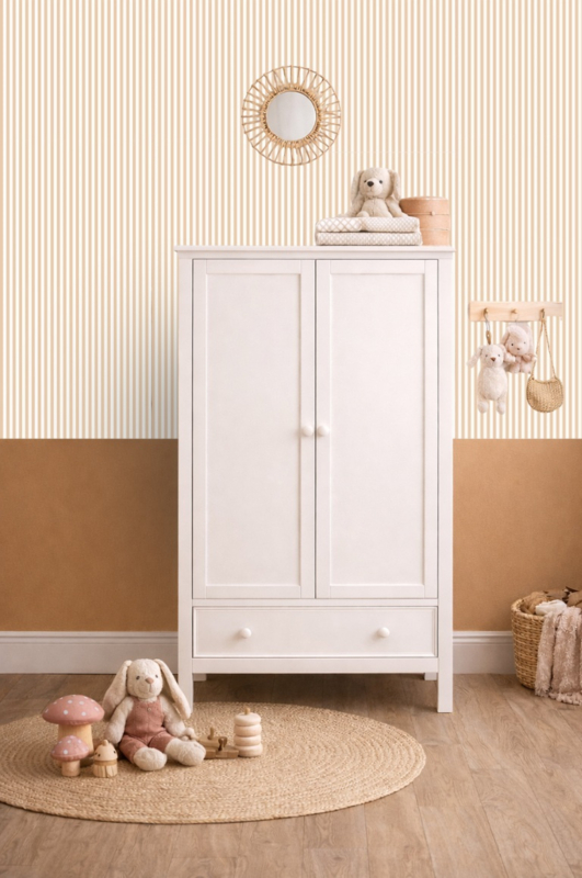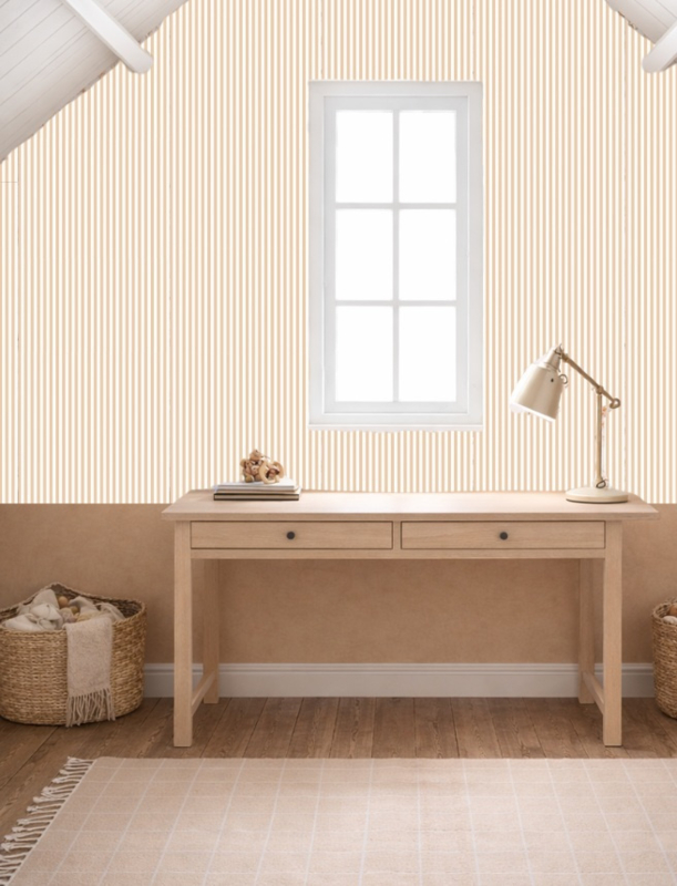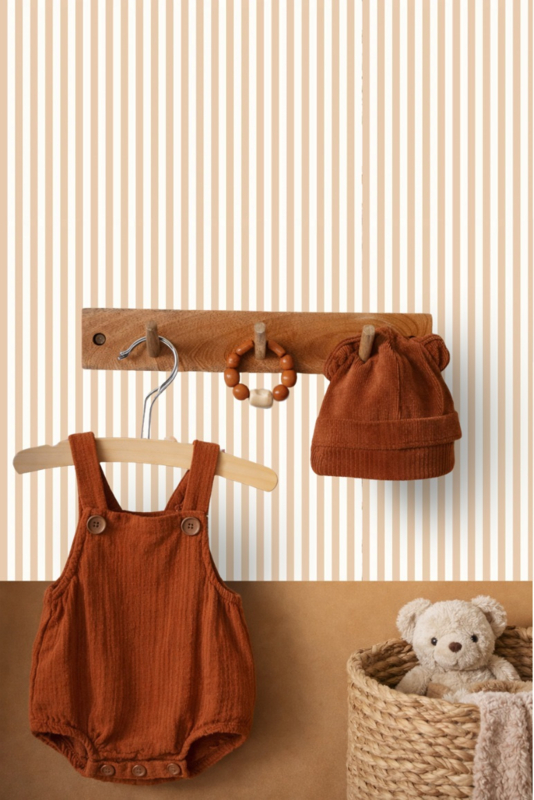 Of je nu een woonkamer, slaapkamer, kinderkamer of werkkamer een stijlvolle basis wilt geven, dit behang brengt balans en zachtheid in elk interieur. Het subtiele contrast maakt Camel Côte Stripes geschikt als rustige accentmuur of als elegante omlijsting van een complete ruimte.