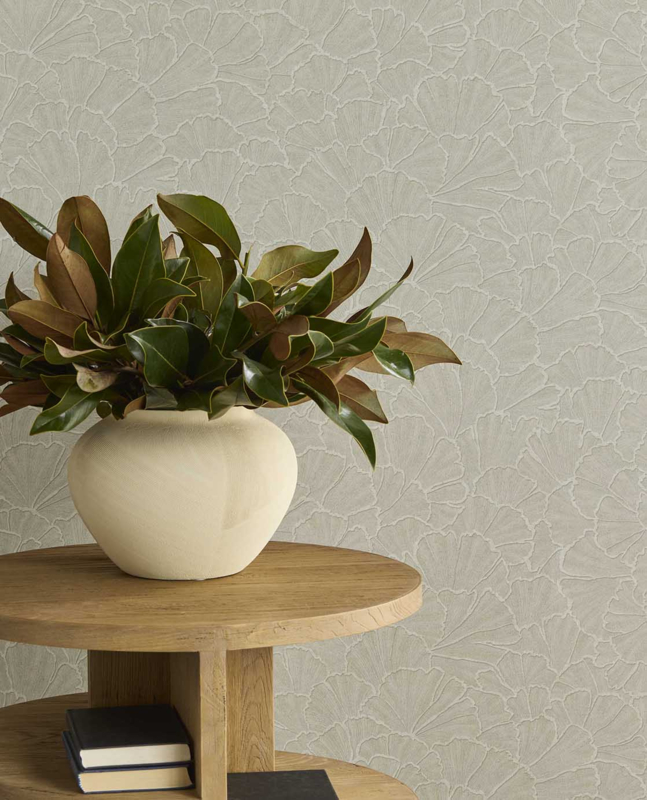 Dit patroon brengt de rustgevende schoonheid van de ginkgoboom in je interieur. Met zijn elegante vormen en natuurlijke uitstraling zorgt Ginkgo voor een subtiele verbinding tussen verleden en heden, natuur en design.