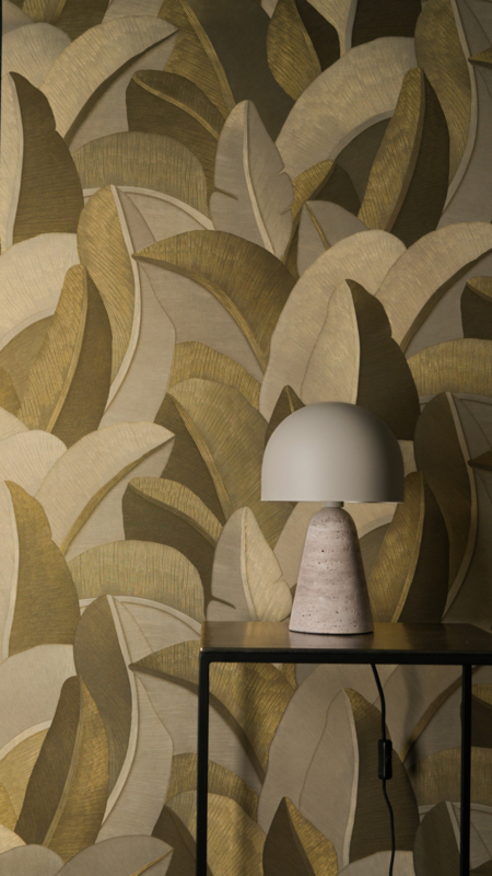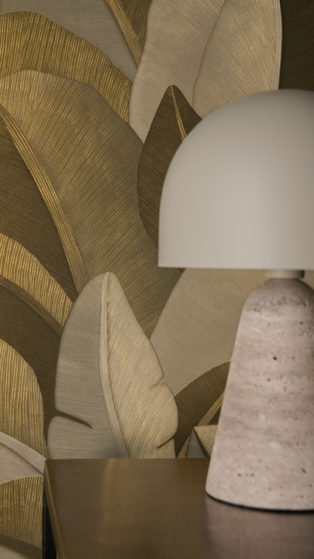 Golden Canopy vangt het moment waarop licht en rust samenkomen. Grote, overlappende bladeren in goud en taupe creëren een sfeer van serene elegantie: subtiel glinsterend, rijk aan diepte en karakter. Dit behang ademt, beweegt met het licht en geeft elke ruimte een luxe uitstraling zonder opdringerig te zijn.
