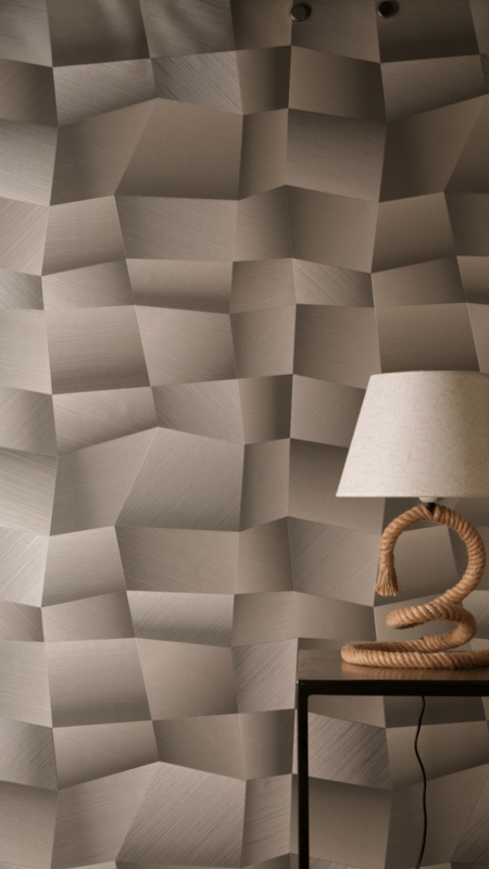 Behang 79197-2 combineert beige en taupe tinten in een verfijnd geometrisch dessin dat diepte, ritme en elegantie toevoegt aan iedere ruimte. Het ontwerp is geïnspireerd op lichtverloop, architecturale schaduwen en subtiele vouwpatronen, waardoor het oppervlak lijkt te ademen en met het licht mee verandert.