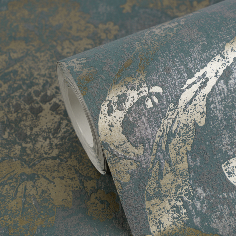 De diepe groentinten creëren rust en harmonie, terwijl subtiele gouden accenten warmte en een luxe glans toevoegen. Het behang ademt karakter en diepte, zonder te overheersen, en is ideaal voor wie een interieur wil verrijken met een elegante, verfijnde sfeer.