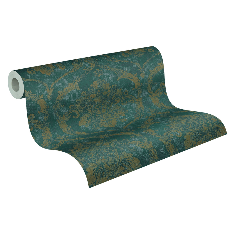 Behang 79019-2 uit de Metropolitan Stories Vibes & Styles collectie van AS Creation brengt luxueuze elegantie in elke ruimte met een verfijnd dessin in groen en goud. Dit patroon combineert klassieke inspiratie uit damaststoffen met een moderne interpretatie, waardoor een tijdloze en stijlvolle wand ontstaat.