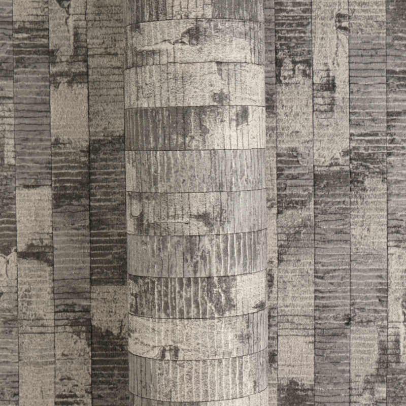 Het ontwerp is tijdloos en strak, maar door de subtiele patina en verticale lijnen oogt het levendig en warm. Perfect voor wie een elegante, serene sfeer wil creëren zonder dat het behang overheerst.