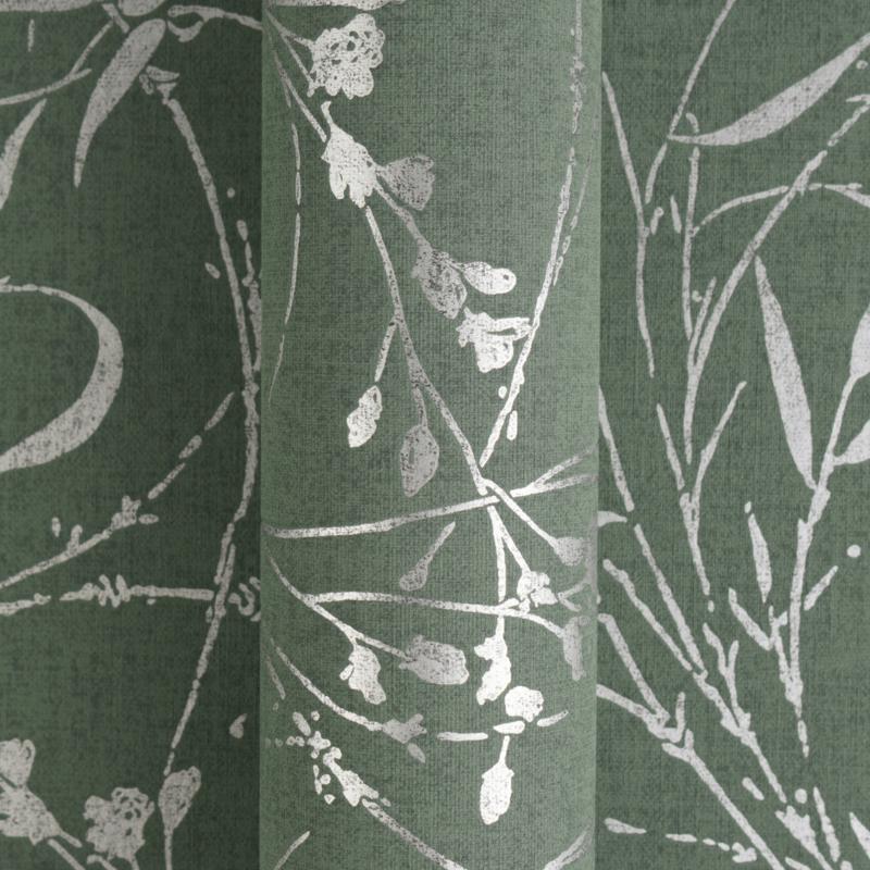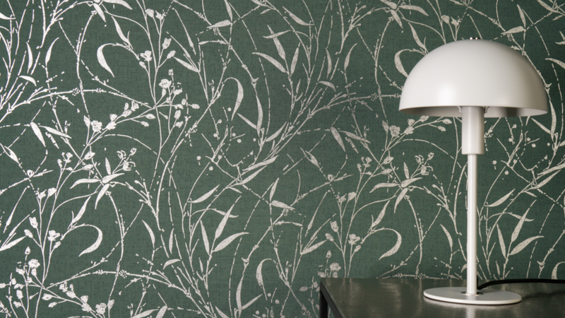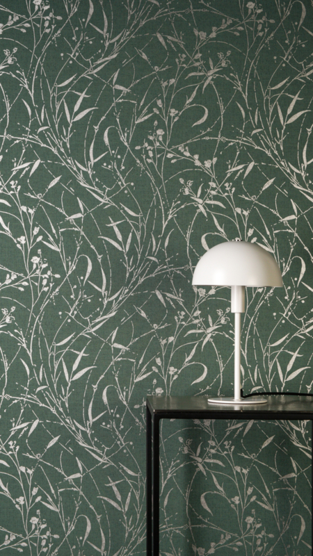 - Wild botanisch design in groen met subtiele zilveren accenten