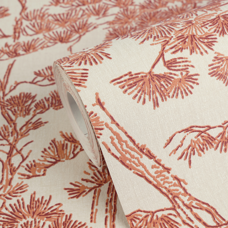 - Poëtisch dennenboomdesign in beige, oranje en roestrood voor warmte en elegantie