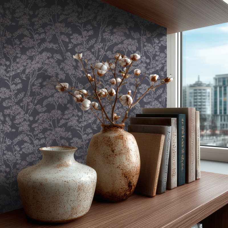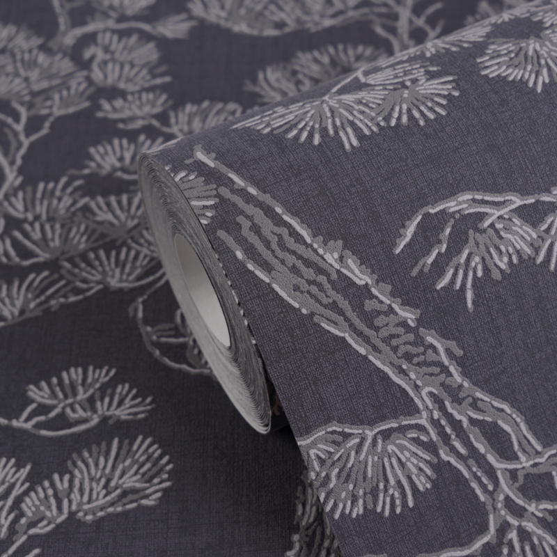 - Poëtisch dennenboomdesign in donkerblauw en grijs voor een moderne, elegante uitstraling