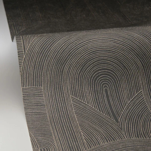 Delicate iriserende strepen voor dit geometrische art-decopatroon op vliesvinylbehang, verkrijgbaar in verschillende kleuren.
