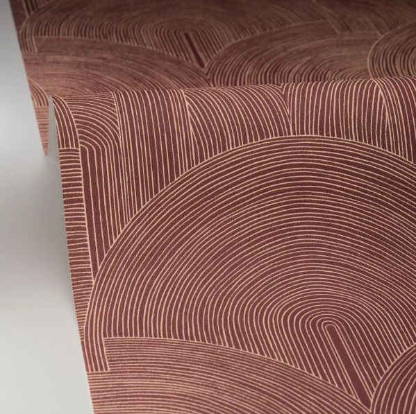 Delicate iriserende strepen voor dit geometrische art-decopatroon op vliesvinylbehang, verkrijgbaar in verschillende kleuren.