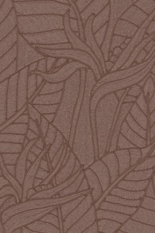 Strelitzia ontleent zijn naam aan de betoverende paradijsvogelbloem. Voor dit dessin werd de bloem vereeuwigd in een nauwgezet handwerk, waarbij haar gracieuze vormen kunstig vastgelegd werden met fijne touwtjes. Deze ambachtelijke creatie is vertaald in naar een schitterend vinyl behangpatroon dat voor een vleugje exotische luxe zorgt.