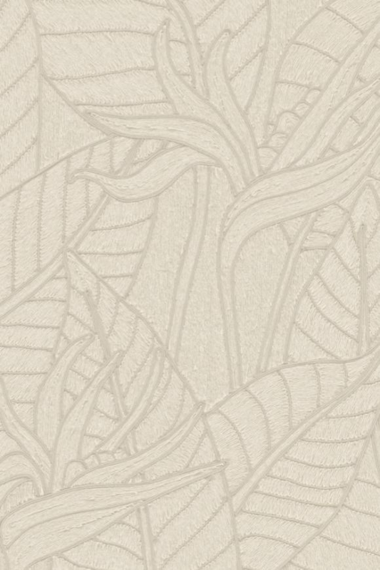 Strelitzia ontleent zijn naam aan de betoverende paradijsvogelbloem. Voor dit dessin werd de bloem vereeuwigd in een nauwgezet handwerk, waarbij haar gracieuze vormen kunstig vastgelegd werden met fijne touwtjes. Deze ambachtelijke creatie is vertaald in naar een schitterend vinyl behangpatroon dat voor een vleugje exotische luxe zorgt.