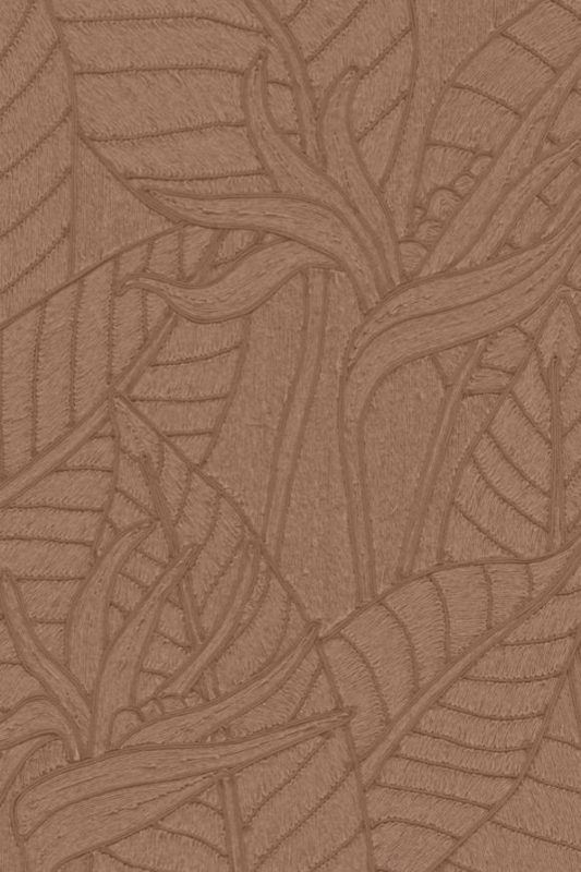 Strelitzia ontleent zijn naam aan de betoverende paradijsvogelbloem. Voor dit dessin werd de bloem vereeuwigd in een nauwgezet handwerk, waarbij haar gracieuze vormen kunstig vastgelegd werden met fijne touwtjes. Deze ambachtelijke creatie is vertaald in naar een schitterend vinyl behangpatroon dat voor een vleugje exotische luxe zorgt.