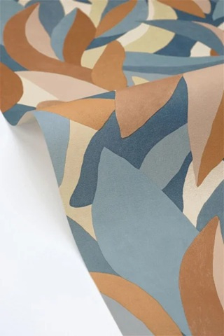 Het dessin heeft een verfijnd en dynamisch karakter dat zorgt voor een levendig maar gebalanceerd geheel op de wand. De kleur en het patroon brengen een subtiel spel van licht en beweging in de ruimte.