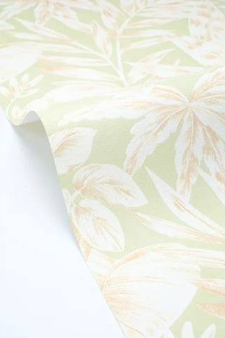 Het bladeren dessin heeft een speels en verfijnd karakter dat zorgt voor een levendig maar toch gebalanceerd geheel op de wand. De frisse kleuren brengen licht en dynamiek in de ruimte.