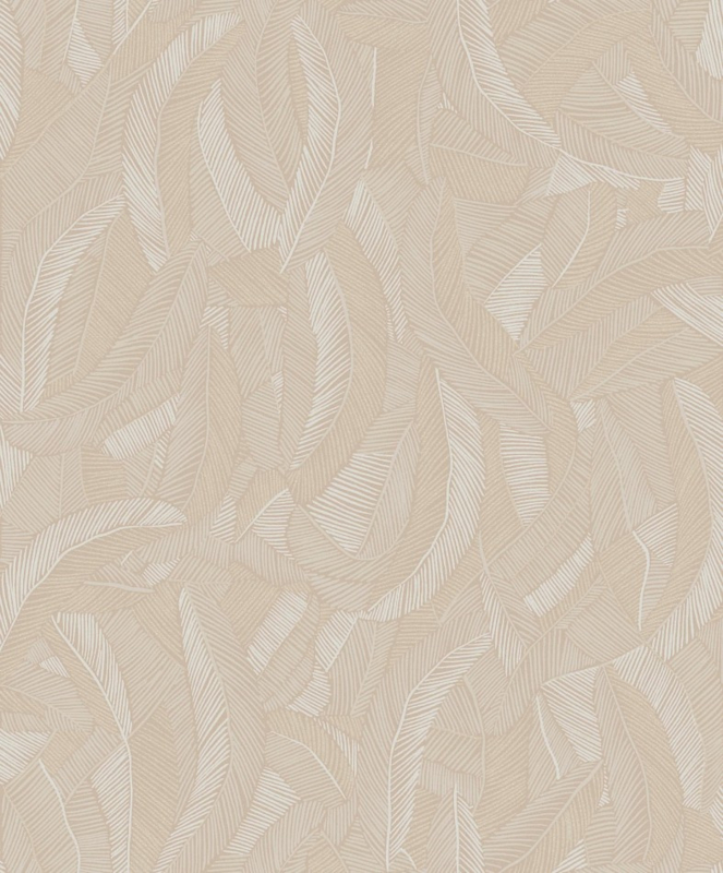 Masureel Pennas Snow ROM205 uit de Romance collectie brengt subtiele dynamiek en verfijning in je interieur. Het behang toont dwarrelende, overlappende bladeren in beige, die een warme en elegante sfeer creëren zonder te overheersen.