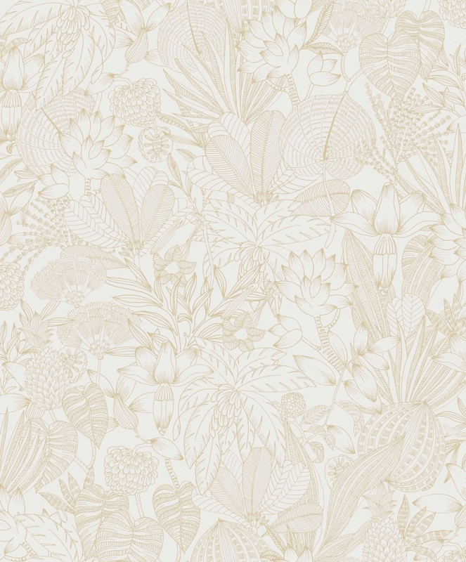 Masureel Bellis Gold ROM102 uit de Romance collectie combineert een elegante crème achtergrond met schitterende gouden details. Het subtiele blad- en bloemmotief zorgt voor een luxueuze en tijdloze uitstraling, perfect om elke ruimte een warme en verfijnde sfeer te geven.