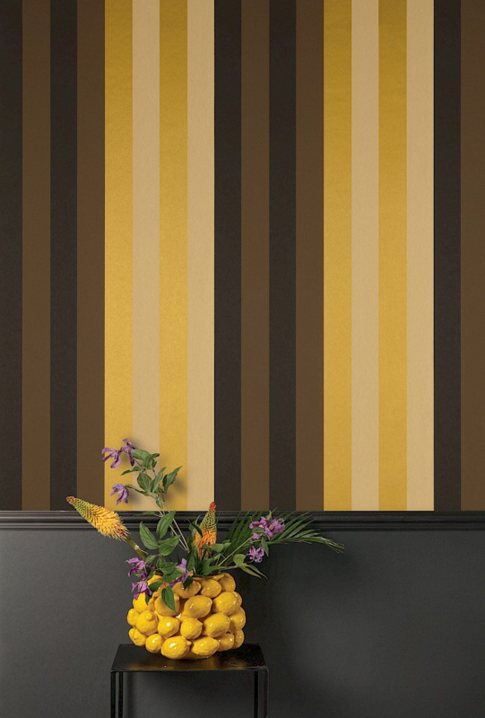 Masureel Infinitus Ceylon ROM502 – Stijlvol strepenbehang in geel, bruin en zwart