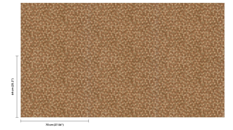 Polyphony 35254 uit de Orfeo-collectie van Hookedonwalls ademt warmte en metallieke rijkdom. Het dichte patroon van kleine zeshoekjes verschijnt hier in een warm palet van koper en goud, met subtiele kleurschakeringen die het oppervlak een levendig, glanzend effect geven. Warm, luxe en tijdloos, Polyphony geeft elke ruimte een exclusieve, metallieke uitstraling.
