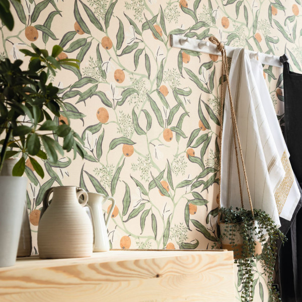 Van de beroemde naam van de godheid van de natuur, populair gemaakt door de literatuur, zal dit patroon ervoor zorgen dat we in de verboden vrucht willen bijten. Zowel in de keuken als in de woonkamers zullen fruitbomen hun plaats vinden. Verkwikkend!