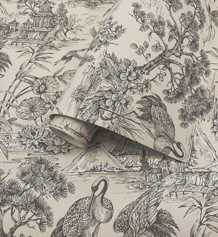 Dutch First Class Arboretum behang Charcoal Cream 91703