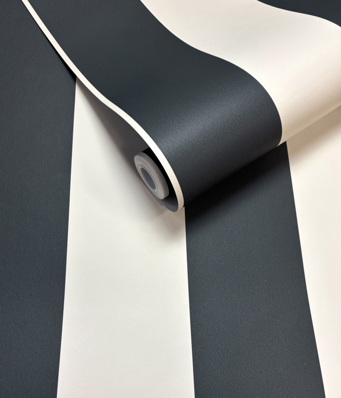 Dit dessin is bij uitstek geschikt als statement-accentwand in de woonkamer, slaapkamer of hal. De brede strepen geven de ruimte structuur en een imposante uitstraling.