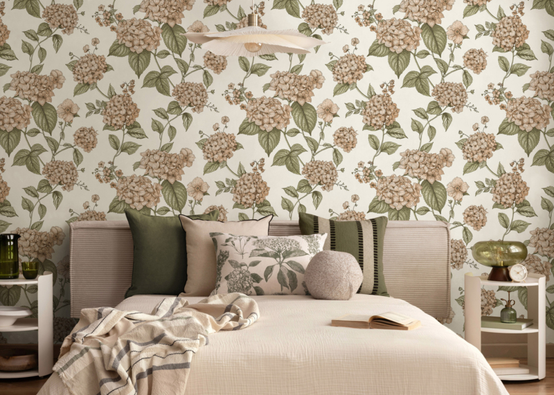 Is Hortensia Coral Green een vliesbehang?