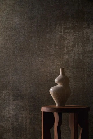 Irisor 77930712 uit de Le Velours 3-collectie van Casamance is behang dat de grens tussen stof en wand volledig opheft. Het diepe noir, een intens antraciet met donkere bruine ondertonen, wordt doorkruist door subtiele gouden draden die in het licht oplichten als geweven brokaat. De detailopname onthult de werkelijke luxe: een fluweelachtige textiellook met een discrete gouden glinstering die het donkere oppervlak levend en meeslepend maakt. De sfeeropname met warm eiken bijzettafel en sierlijk keramiek bevestigt de onweerstaanbare kracht van deze kleur: diep, warm en cinematografisch. Compromisloos, sensueel en onmiskenbaar Frans.