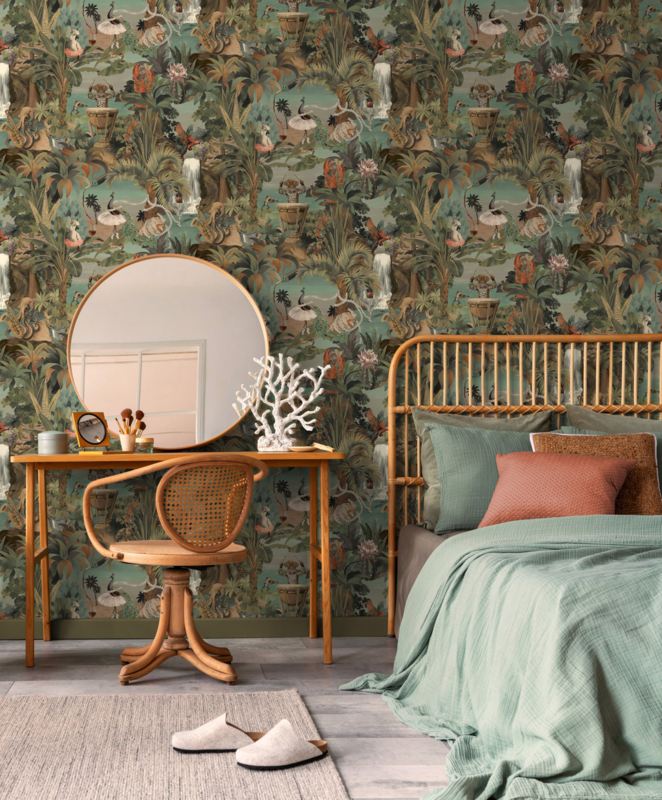 Dit dessin is bij uitstek geschikt als statement-accentwand in de woonkamer, eetkamer of entree. Het gedempte kleurenpalet en de rijke detaillering maken van elke ruimte een sfeervolle, onverwachte blikvanger.