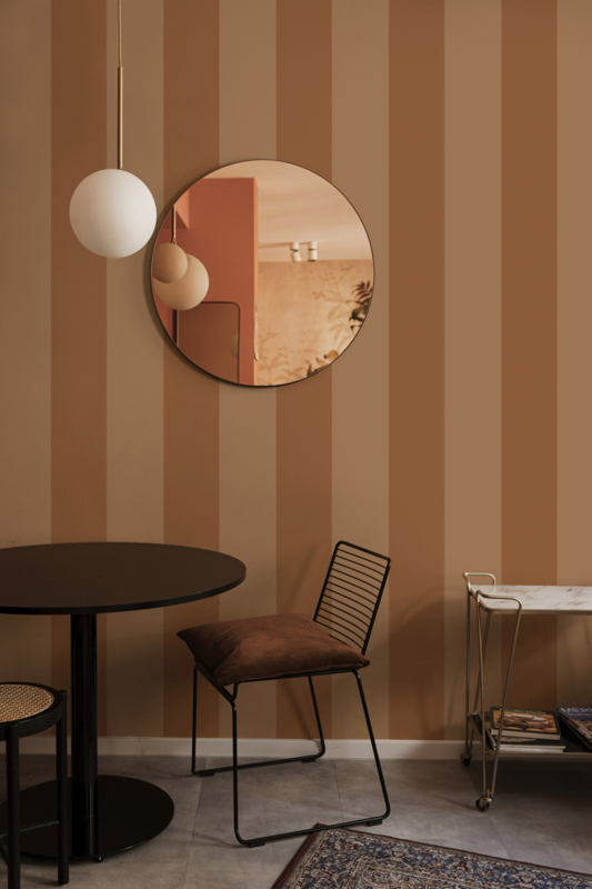 Cordelia Stripe Rust 92100 uit de Wanderlust-collectie van Dutch First Class is de keuze voor wie warmte en karakter op de muur wil. Brede, strakke strepen in lichtbruin en bruin wisselen elkaar ritmisch af, een toon-op-toon spel dat de wand diepte en allure geeft zonder te overheersen. Geen ornament, geen textuur. Alleen ritme, contrast en evenwicht. Cordelia Stripe Rust geeft elke ruimte warmte en karakter, strak en tijdloos tegelijk.