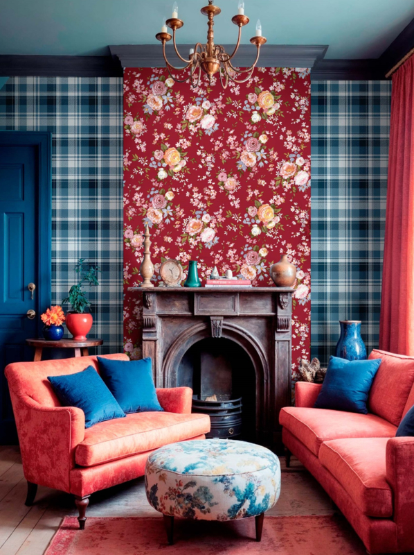 Tartan 8387 uit de Blooming Garden-collectie van Noordwand is de keuze voor wie een klassiek tartan-ruitpatroon wil met een frisse, uitgesproken uitstraling. Het dessin toont een grootschalig geruit tartan patroon in navy, lichtblauw en wit, met een subtiele geweven textuur die het patroon diepte en een stoffen kwaliteit geeft. De afwisseling van donker navy en lichtblauw naast de witte vlakken geeft het dessin een helder, krachtig contrast. Zoals de sfeerimpressie laat zien, combineert Tartan 8387 verrassend goed met een warm bloemendessin als kleurrijke accentwand ernaast.