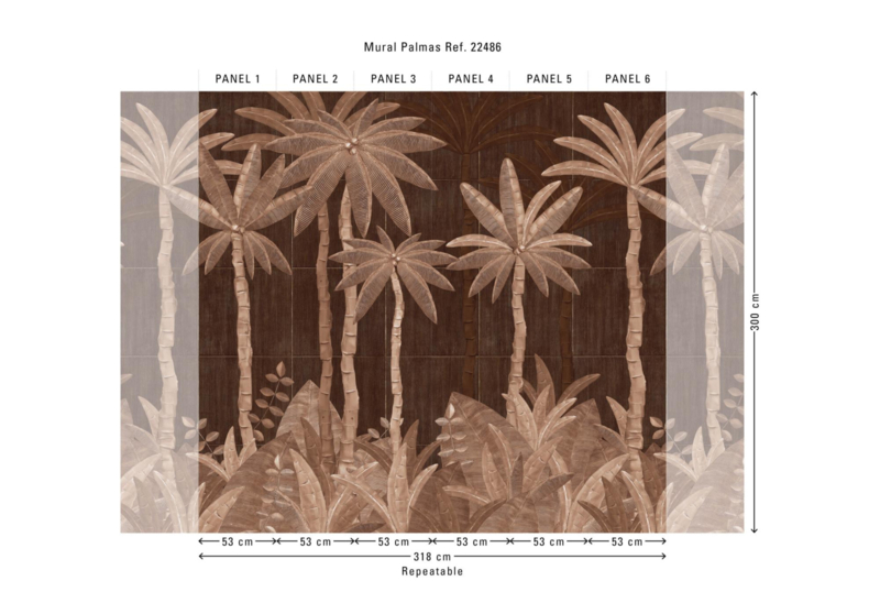 Palmas 22486 uit de Bossa Nova-collectie van Hookedonwalls is geen gewoon behang. Het is een panoramamural die een complete wand transformeert tot een artistiek statement. Het dessin toont een expressief patroon van slanke palmbomen met organische lijnen en vormen, geïnspireerd op de weelderige natuur van Brazilië en de ontspannen sfeer van de bossa nova. Warm, ritmisch en vol beweging. Palmas brengt de ziel van Rio de Janeiro rechtstreeks naar jouw interieur.