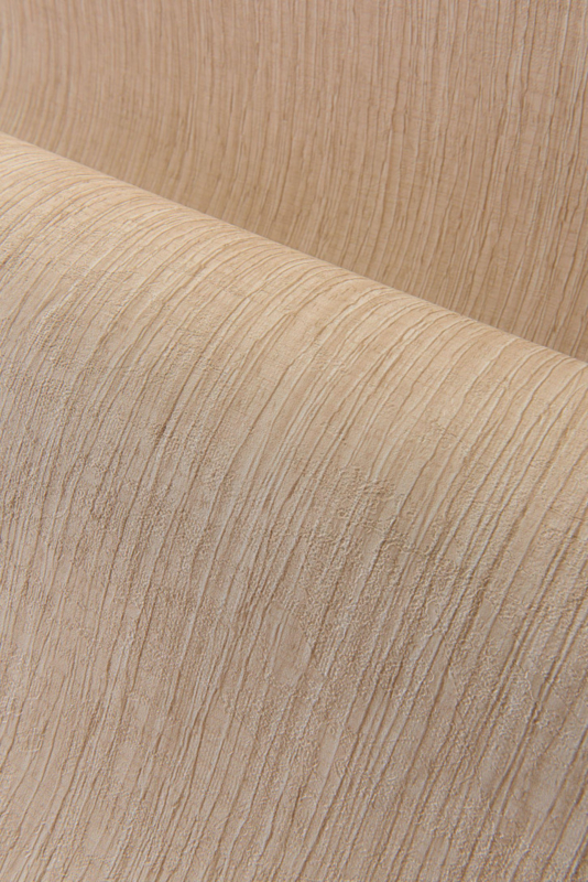 - Effen structuurbehang met overtuigende verticale vezelstructuur in zacht beige