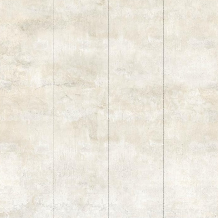 - Grootschalige panoramamural met verweerde minerale textuur in zacht crèmewit met subtiele beige vlekken