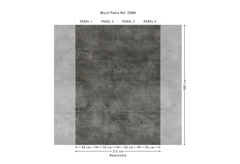 Dit panorama meet 212 cm breed (4 banen van 53 cm) bij 300 cm hoog. De tekening sluit perfect aan, zodat je meerdere exemplaren naast elkaar kunt plaatsen voor een doorlopend, grootschalig effect.