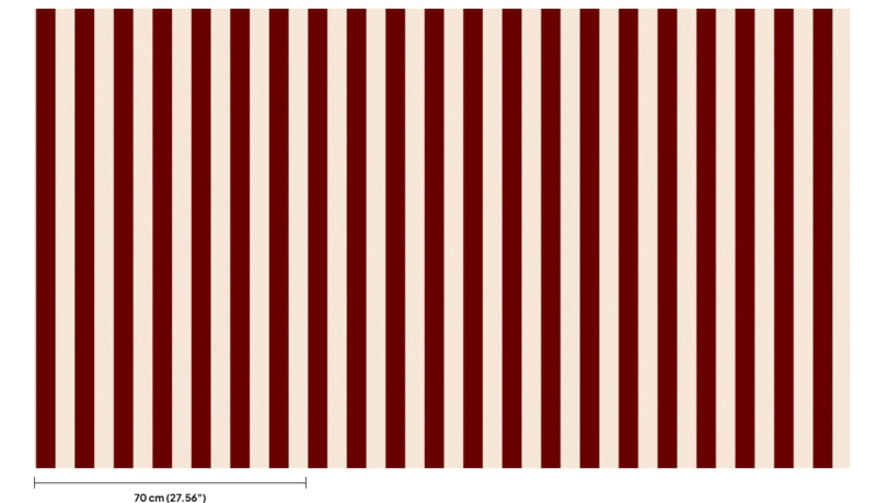 Manoir 90745 uit de Stripes & Stripes-collectie van Hookedonwalls is streepbehang met karakter en overtuiging. Brede verticale banen in bordeauxrood wisselen af met beige, in een gelijkmatig ritme dat een wand direct definieert. Klassiek van oorsprong, uitgesproken van aanwezigheid. Manoir is de keuze voor wie een ruimte wil ankeren met kleur en structuur zonder in te leveren op tijdloosheid.