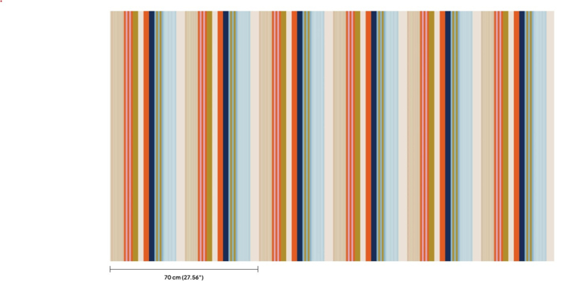 Minnelli 90786 uit de Stripes & Stripes-collectie van Hookedonwalls is het uitbundigste dessin van de collectie. Verticale strepen in oranje, blauw, oker, beige en roze wisselen elkaar af in variërende breedtes en een levendig, asymmetrisch ritme. Geen twee banen zijn precies hetzelfde. Het resultaat is een wand vol energie, kleur en beweging. Minnelli is de keuze voor wie een ruimte instant leven en persoonlijkheid wil geven.