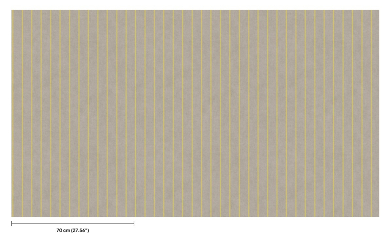 - Fijne verticale strepen in fris geel op een warmgrijze ondergrond met linnentextuur