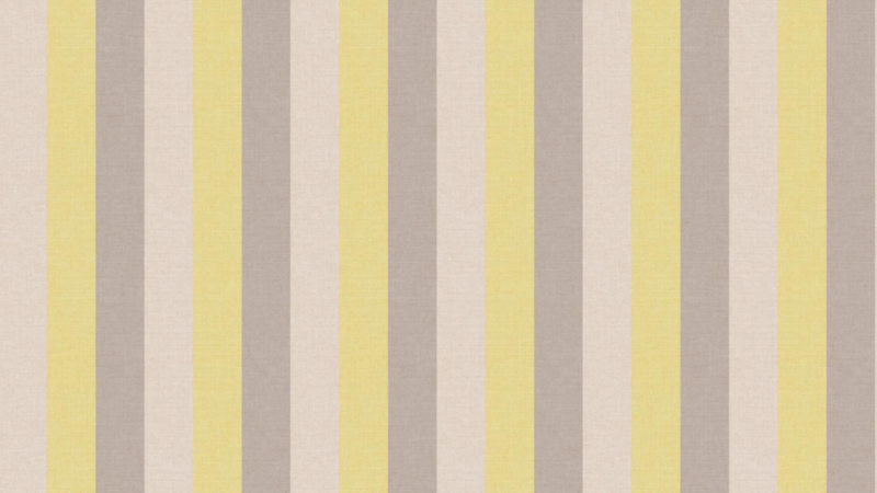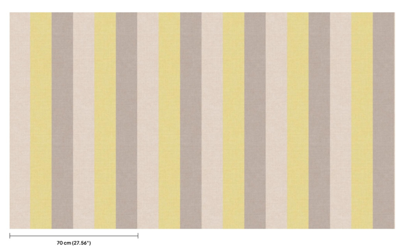 - Brede verticale banen in fris geel, warmgrijs en lichtbeige in een gelijkmatig driekleurig ritme
