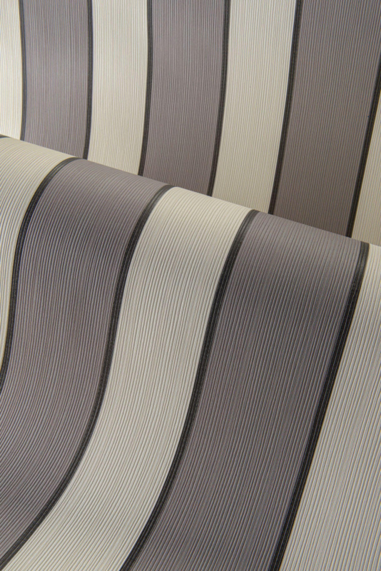 - Brede verticale strepen in grijs en gebroken wit met verfijnde donkergrijze contourlijn